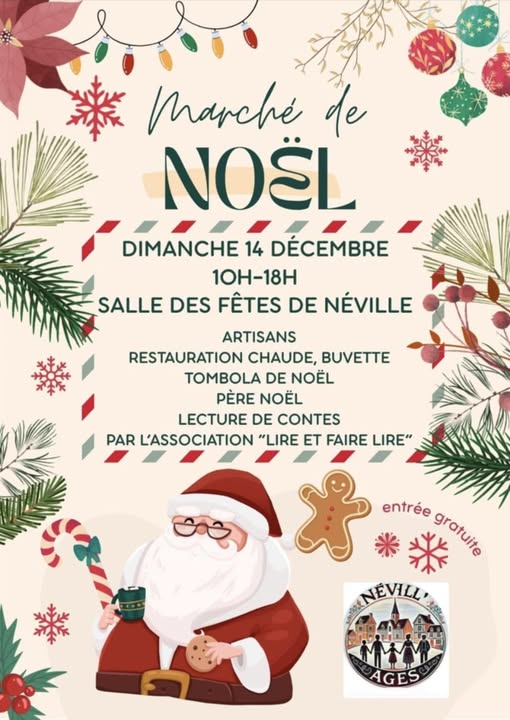 Nous avons le plaisir de vous annoncer que Nevill’âges organise son tout premier Marché de Noël le dimanche 14 décembre 2025, à la salle des fêtes de Néville